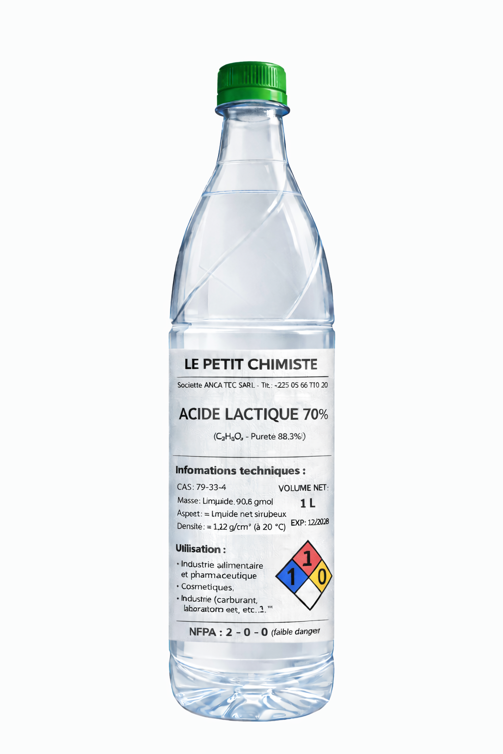 PURETÉ : Solution d’acide lactique (≈ 80 % – selon lot)