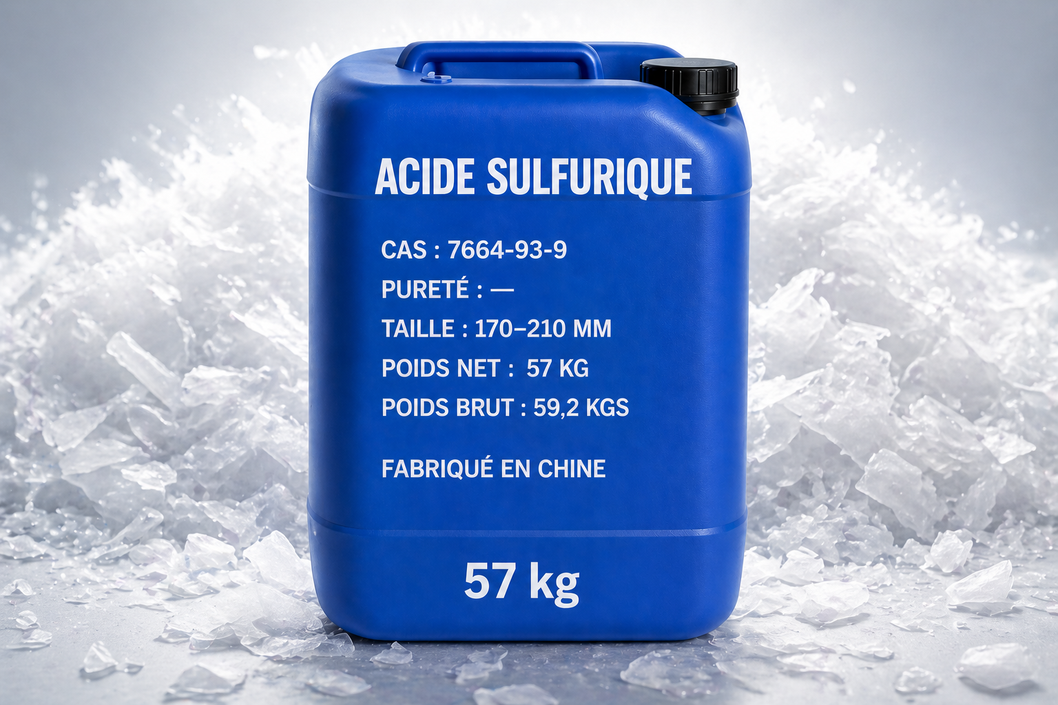 L’acide sulfurique est un acide minéral fort très concentré, largement utilisé dans l’industrie chimique, le traitement des métaux, la fabrication d’engrais, le nettoyage industriel et les batteries.