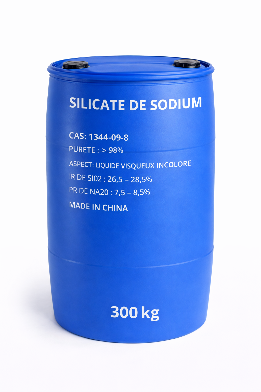 Solution aqueuse de silicate de sodium, issue de la fusion de la silice (SiO₂) et du carbonate de sodium, puis dissoute dans l’eau.Présentation :